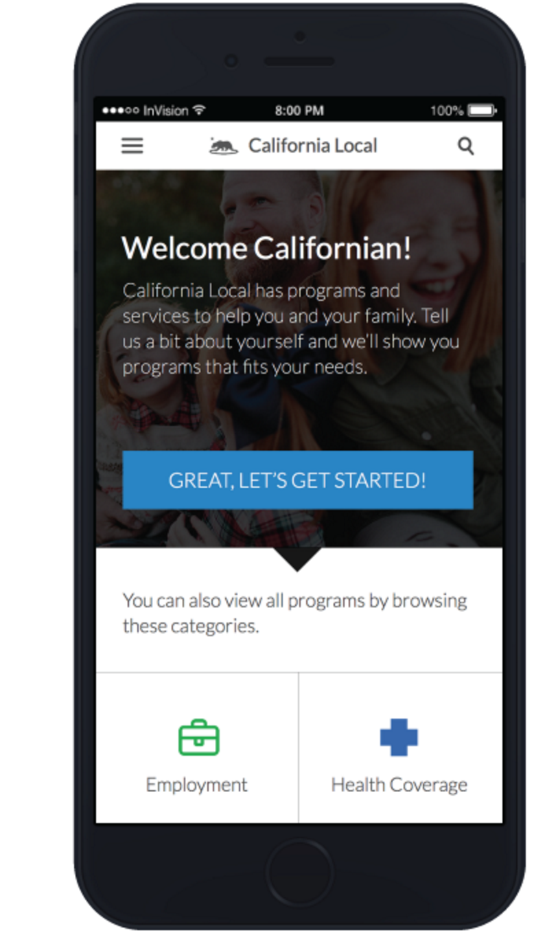 The current ca.gov website doesn't guide the user to a specific area to begin a search, so if a user doesn't have something in particular to search for, he or she might get lost on the homepage. In my version of the website, my goal was to guide the user to use the drop down menu to facilitate an easier search and experience. If a user didn't feel like using the "mad lib" form, then he or she could browse programs by category or by directly searching in the top right corner.